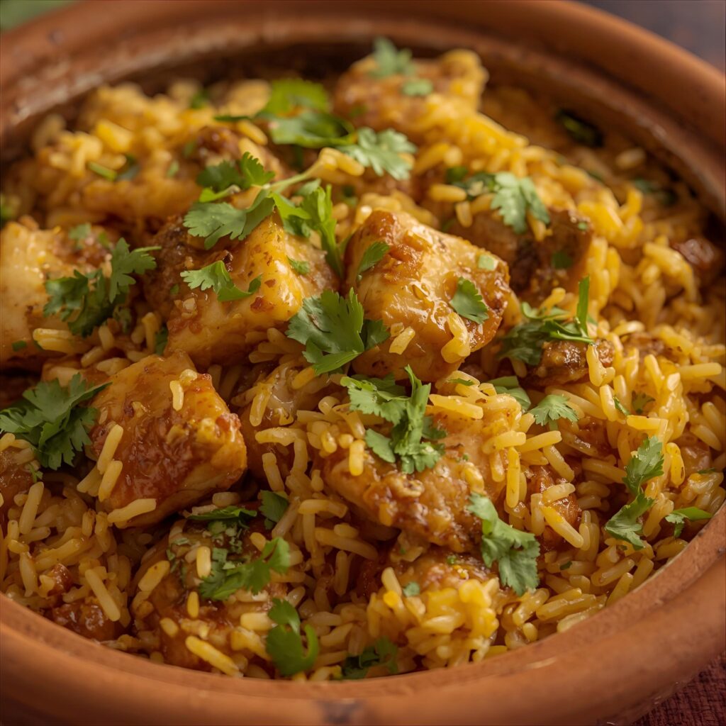 “This flavourful South Asian dish made with spiced fish, aromatic basmati rice, and fragrant herbs combines the richness of marinated fish with layers of rice and can be served with raita or salad.”