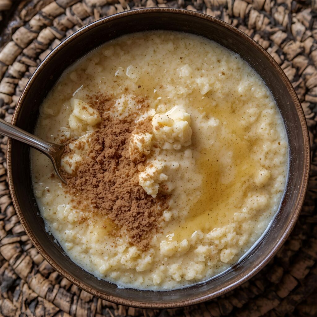 “Phutu is a coarse, crumbly maize meal porridge served with amasi which is fermented sour milk. It is a staple traditional and yet simple dish, often enjoyed with a dollop of cream or butter and for a bit of taste some people add a sprinkle of brown sugar.”