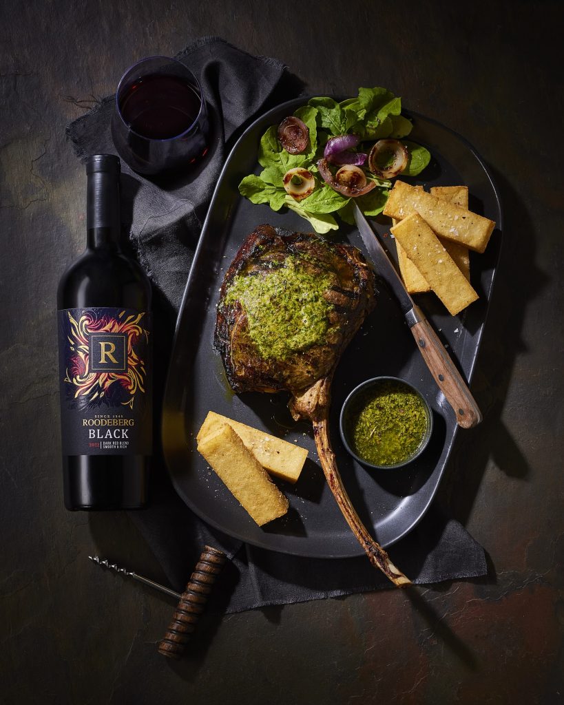 “Roodeberg Black’s depth of flavour truly shines when paired with dishes cooked over an open flame,” says Chef Goffe-Wood. “The rich, dark fruit notes of the wine harmonise with the tomahawk steak’s robust flavours, while the chocolate in the braaibroodjies creates an unforgettable pairing with Roodeberg Black’s subtle smokiness and silky tannins.”
